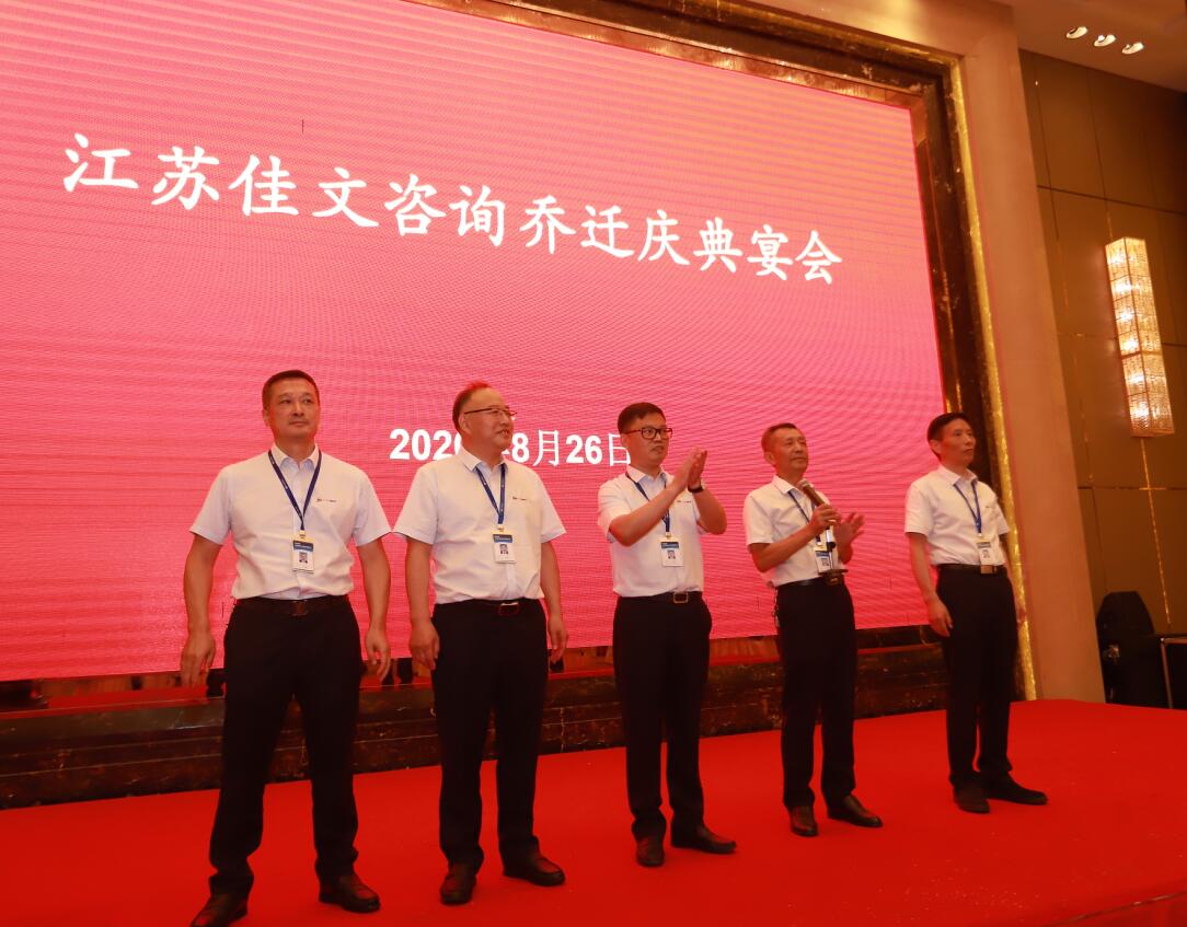 熱烈祝賀江蘇佳文投資咨詢有限公司、控股子公司江蘇佳安安全科技有限公司、江蘇清城化工工程設計有限公司喬遷之喜!2020年8月26日是公司喬遷之日,全體員工熱情高漲,衷心祝愿公司喬遷吉祥,業務蒸蒸日上!