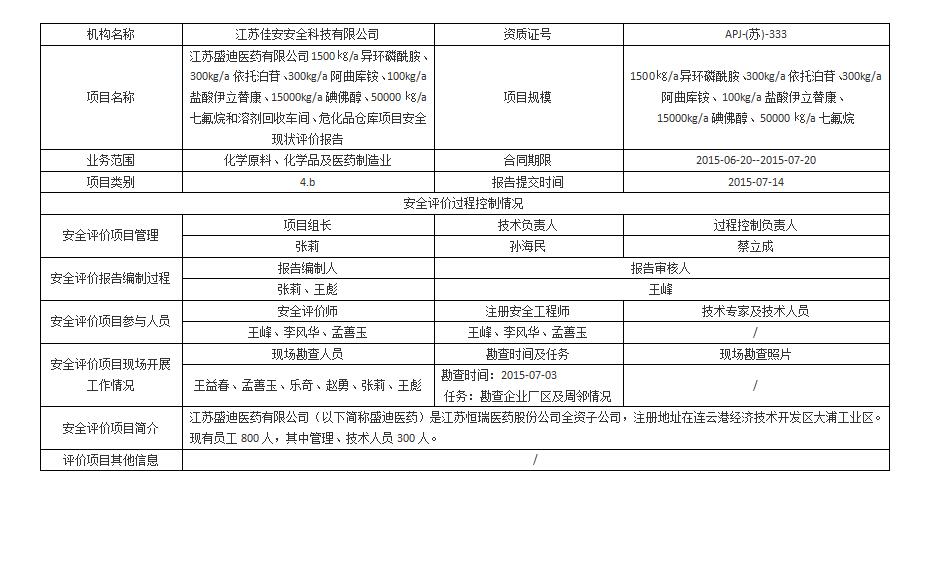 江蘇盛迪醫藥有限公司 1500㎏/a異環磷酰胺、300kg/a依托泊苷、300kg/a阿曲庫銨、100kg/a鹽酸伊立替