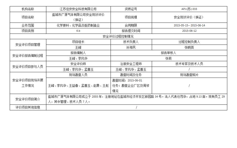 鹽城市廣源氣體有限公司 安全現狀評價(換證)