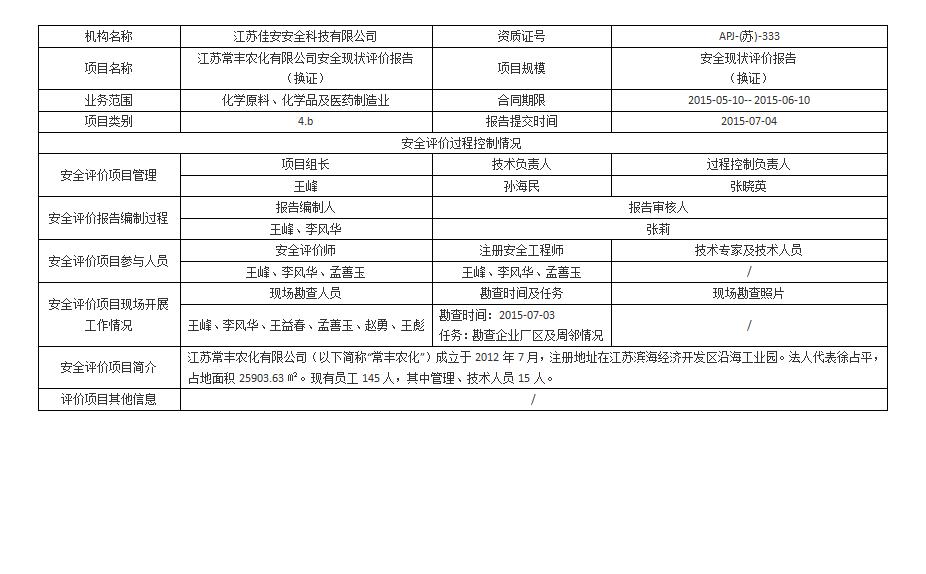 江蘇常豐農化有限公司 安全現狀評價報告(換證)
