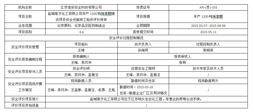鹽城南方化工有限公司 年產1200噸烯草酮建設項目安全設施竣工驗收評價報告
