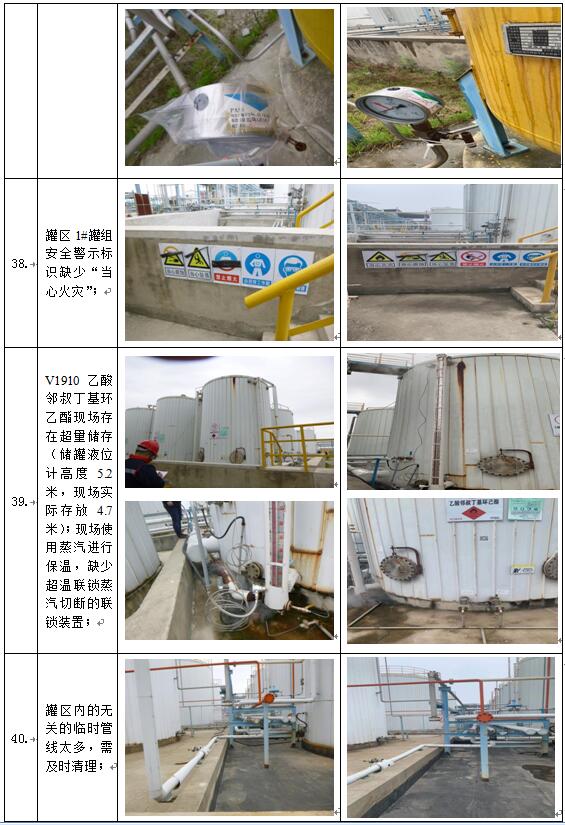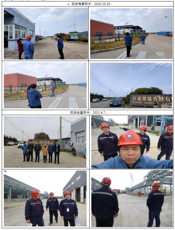 安全評價項目簡介 | 江蘇馨瑞香料有限公司成立于2014年06月19日,企業位于江蘇濱海開發區沿海工業園(北區),法定代表人:應思斌。注冊資本2000萬美元,由江蘇新化化工有限公司出資16%、浙江新化化工股份有限公司出資35%,Givaudan SA(瑞士奇華頓公司)出資49%共同組建。公司現有職工189人,設立安環部做為專職安全管理部門,其中專職安全管理人員4人。根據馨瑞香料提供的安全風險等級評估報告其安全風險等級為黃色。馨瑞香料已申報二級標準化,并已于2019年6月28日取得市級主管部門同意上報意見,內部管理按標準化要求執行。 有一期生產項目為:100t/a香芹酮(項目放棄)、100t/a苯氧乙酸烯丙酯、1000t/a乙酸對叔丁基環己酯、1000t/a乙酸鄰叔丁基環己酯、800t/a乙酸三環癸烯酯、500t/a丙酸三環癸烯酯、200t/a乙酸蘇合香酯、100t/a菠蘿酯、200t/a庚酸烯丙酯已通過安全設施竣工驗收,已于2017年11月20日領取了《安全生產許可證》,許可證號:(蘇)WH安許證字[J00480],許可范圍:15.179t/a環己酮、17.36t/a甲醇、70.884t/a乙酸[含量>80%],有效期至2020年11月19日(因一期項目涉及的物料儲存轉移到二期新建倉庫、儲罐,因二期新建設施尚竣工驗收進度影響,安全生產許可證過期,所以一期生產項目目前處于停產狀態)。因二期12000噸香料生產線技改項目的建設,其中部分產品與一期項目為相同產品,使用相同設備,故對一期項目涉及使用的設備、工藝(含催化劑,已取得省化工行業協會認證,相關高危工藝已進行反應熱風險評估)進行了 變更,保持一期、二期相同產品的設備、工藝一致。另二期新建了原料倉庫一、原料倉庫二、原料倉庫三、原料倉庫四,改擴建了罐區(罐組1~8)對一期項目所涉及的原輔材料、產品的儲存進行了 變更,本次變更不涉及產品產能的變化。一期項目與二期相同產品因工藝變更與二期一致及重新校核,現領證品種為中間產品:240.36t/a乙酸(2630)[含量>80%]、266.7t/a丙酸(126)、17.51t/a戊醇(2165)、11.9t/a丁酮(236)、673.36t/a丁酮甲醇混合液、249.25t/a仲丁醇(219)、36.83t/a烯丙醇(141劇毒);副產品:379.81t/a丁酮(236)、1125.26t/a乙酸[含量>80%](2630)、114.3t/a甲醇(1022)、66.87t/a鹽酸(2507)。 | ||||